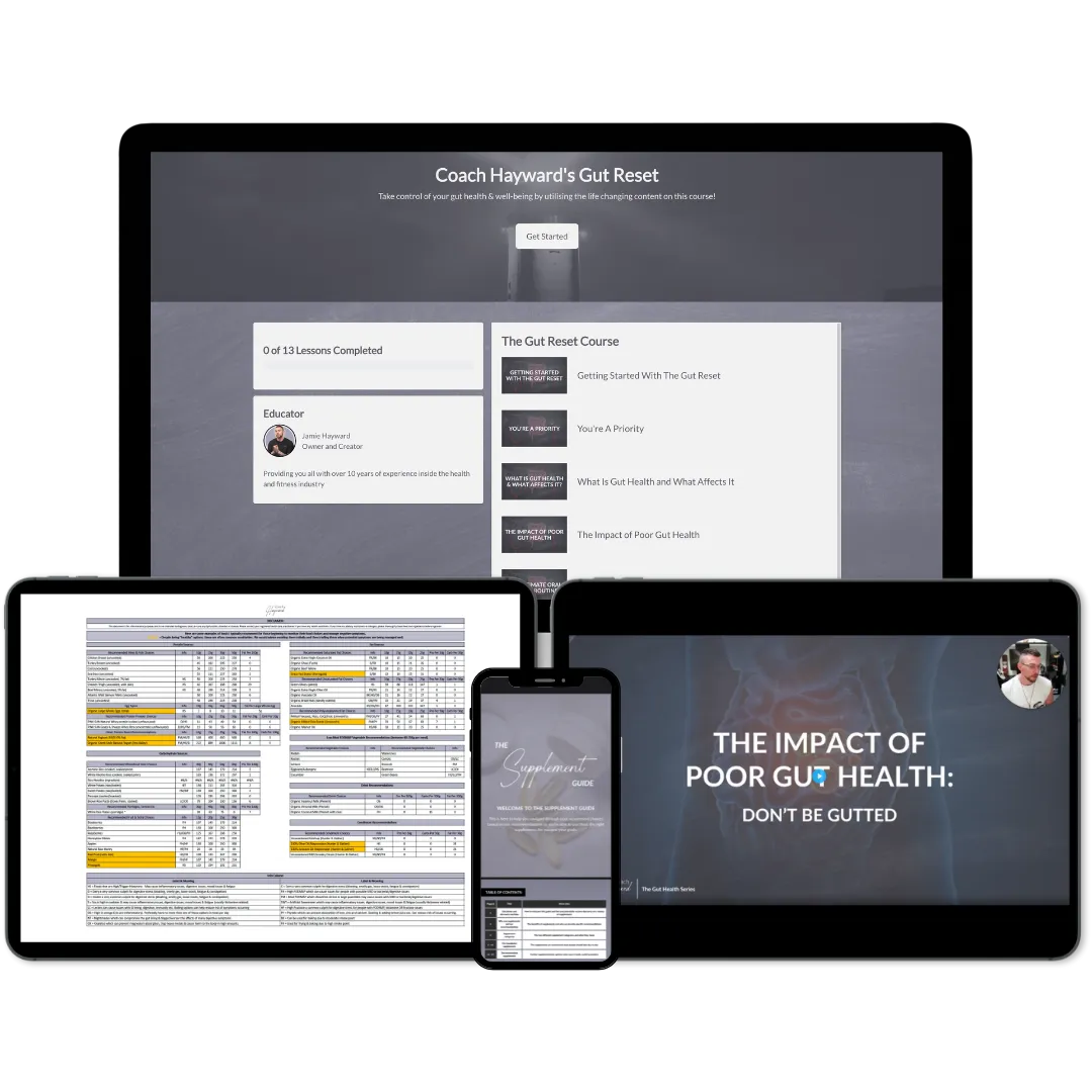 While this is a self-guided course and not intended to diagnose or treat specific conditions, it offers valuable insights into gut health, food choices, intolerances, inflammation and more. These insights can help you make powerful lifestyle changes that support gut function and manage symptoms. Many conditions, like bloating, reflux, IBS, SIBO and leaky gut, are often worsened by underlying gut dysfunction and poor lifestyle choices. Put it this way, Jamie has utilised these same methods with clients facing similar issues, helping them improve not only their symptoms but also their overall lifestyle, confidence and daily habits. His ultimate goal with this course is to help you start becoming the healthiest, happiest version of yourself, inside and out.